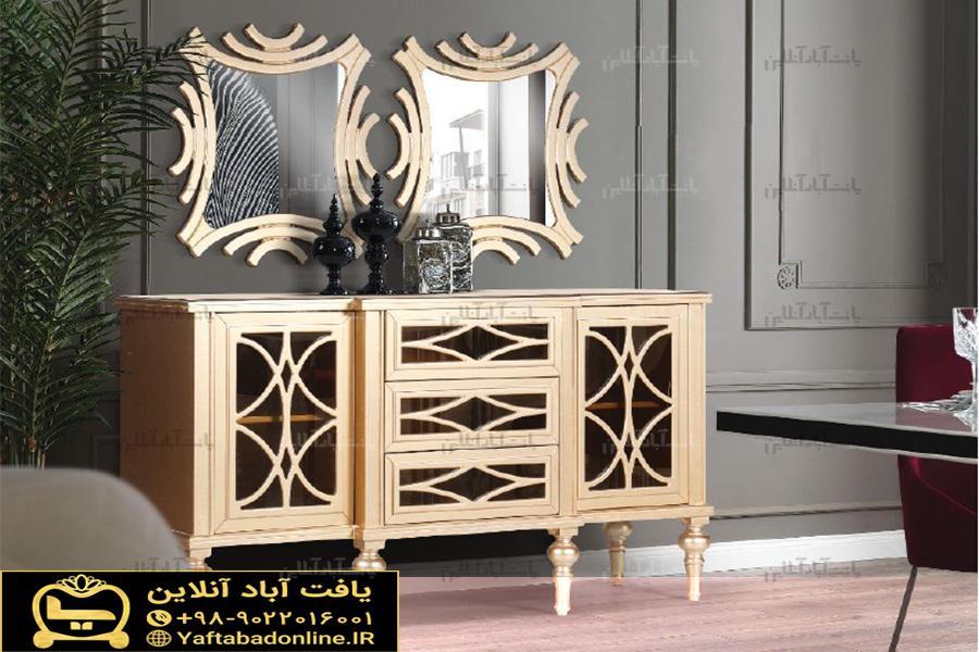 میز کنسول و آینه هلیا از سری مدل های سایت یافت آباد آنلاین بوده که با طراحی ساده، جذاب و زیبای خود قابلیت استفاده در دکوراسیون های کلاسیک و مدرن را دارد. این میز دارای دو عدد قاب آینه دکوراتیو می باشد که به زیبایی آن افزوده است. از ویژگی های دیگر مدل هلیا می توان به وجود درب های شیشه ای اشاره کرد بدنه میز کنسول و آینه هلیا تماماً از ام دی اف درجه یک ساخته شده که تضمین کننده طول عمر بالای محصول را دارد. میز کنسول و آینه هلیا را در رنگ دلخوا و با ضمانت ۲۴ ماهه یافت آباد آنلاین از ما بخواهید.