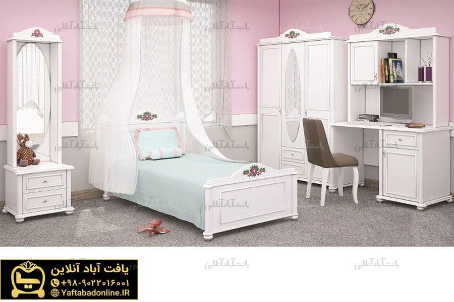 اگر به دنبال سرویس خواب ساده، شیک، زیبا، از مدل های روز دنیا با قیمت مناسب هستید، یکی از پیشنهاد های شگفت انگیز ما به شما سرویس خواب نیو پرنس می باشد. از ویژگی های سرویس خواب نوجوان نیو پرنس می توان به تاج ساده آن اشاره کرد که زیبایی محسوسی را برای این مدل به ارمغان اورده است. این سرویس خواب از MDF درجه یک با روکش وکیوم تولید می شود که ساختار بسیار محکم و مناسبی دارد که از ویژگی های آن می توان به بی صدا بودن تخت خواب اشاره کرد. سرویس خواب نوجوان نیو پرنس شامل تخت خواب، میز آرایش و پاتختی زیبایی است که اتاق شما را بی نیاز از هر وسیله ی دکوری دیگر می کند. میز آرایش این سرویس کشوی های بزرگ کاملا مناسب قرار دادن وسایل می باشد. سرویس خواب نوجوان نیو پرنس را با رنگ دالخواه، ضمانت ۲۴ ماهه یافت آباد آنلاین و خدمات پس از فروش ۵ ساله از ما بخواهید.