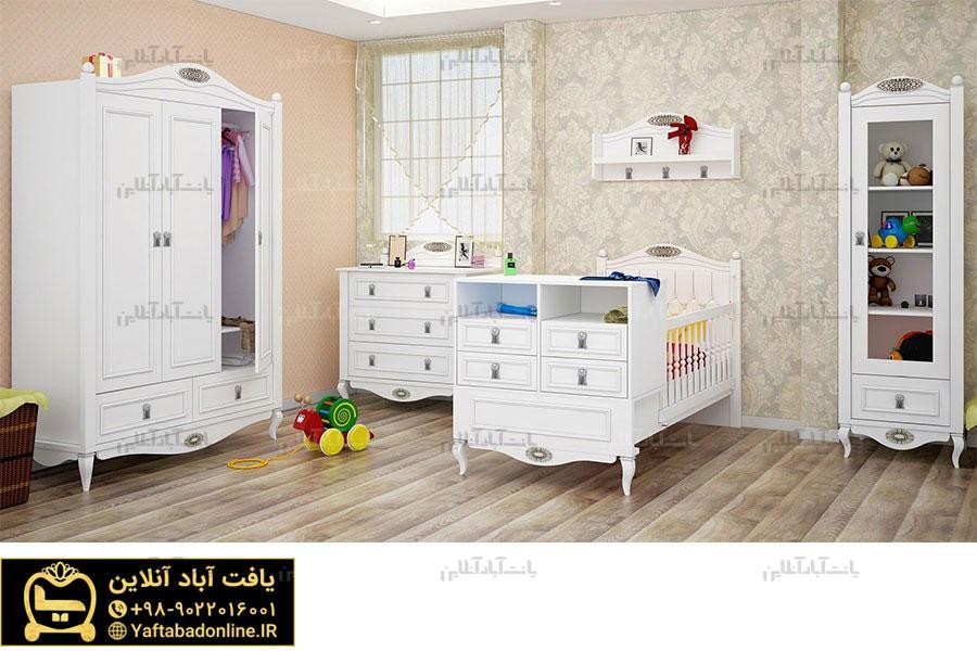 اگر به دنبال سرویس خوابی ساده، شیک، مدرن و در عین حال زیبایی برای کودک خود هستید، سرویس خواب نوزاد برلیان می تواند انتخاب هوشمندانه ای باشد. این سرویس خواب از MDF درجه یک با روکش وکیوم تولید می شود که از استحکام بالایی برخوردار است. تخت خواب این مدل به صورت دو منظوره بوده که امکان تغییر سایز تخت متناسب با رشد نوزاد بر روی آن وجود دارد. سرویس خواب نوزاد برلیان شامل تخت خواب، کمد، ویترین و شلف است که اتاق خواب کودک شما را به راحتی کامل می کند. از ویژگی های دیگر این سرویس خواب می توان به وجود کشو های بزرگ و جادار بر روی تخت خواب، ویترین و کمد اشاره کرد. سرویس خواب نوزاد برلیان را با رنگ دلخواه، ضمانت ۱۲ ماهه یافت آباد آنلاین و خدمات پس از فروش ۵ ساله از ما بخواهید.