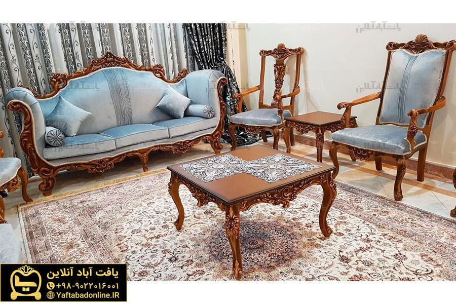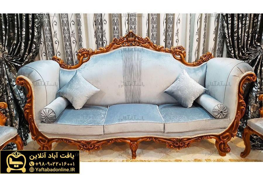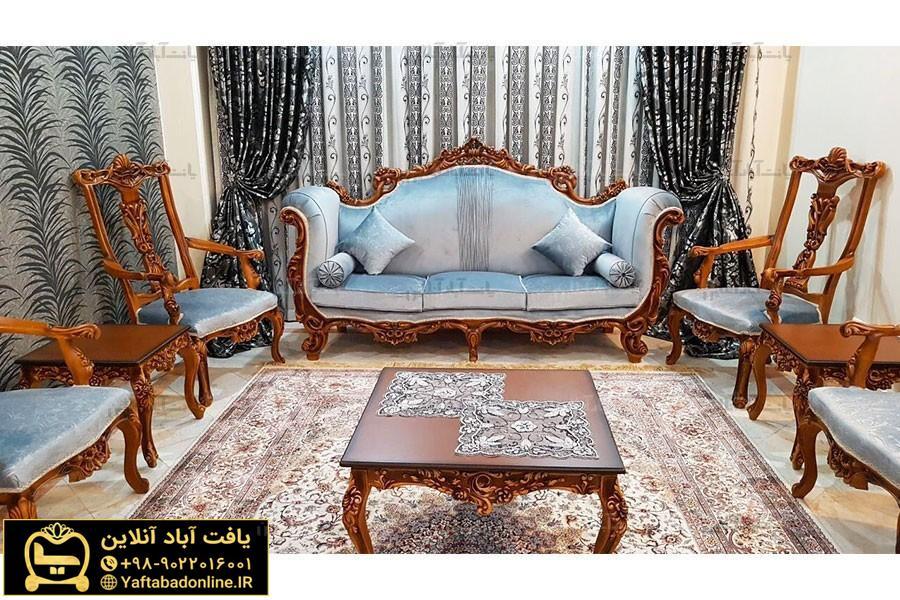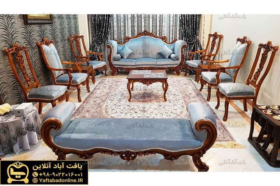 مبل استیل رویال، مبلی هفت نفره بوده که به خوبی می تواند در فضای پذیرایی شما جای گیرد و محیط خانه شما را زیبا تر نشان دهد. این مبل دارای نقوش منبت کاری شده ظریف و زیبایی بوده که مناسب خانواده های علاقه مند به مبل کلاسیک و استیل، با طراحی ظریف است. نشیمنگاه مبل به دلیل استفاده از فوم سرد، راحتی خوبی هنگام نشستن دارد و پس از برخواستن از روی مبل به حالت اولیه بازگشته و فرم آن ثابت می شود. اسکلت و نمای این مدل تماماً از چوب راش ساخته شده است. سِت مبل استیل رویال شامل ۱ عدد کاناپه سه نفره، ۴ عدد مبل تک، یک میز جلو مبلی و دو عدد میز عسلی بوده است. این مبل را در رنگ دلخواه و ضمانت ۲۴ ماهه یافت آباد آنلاین از ما بخواهید.