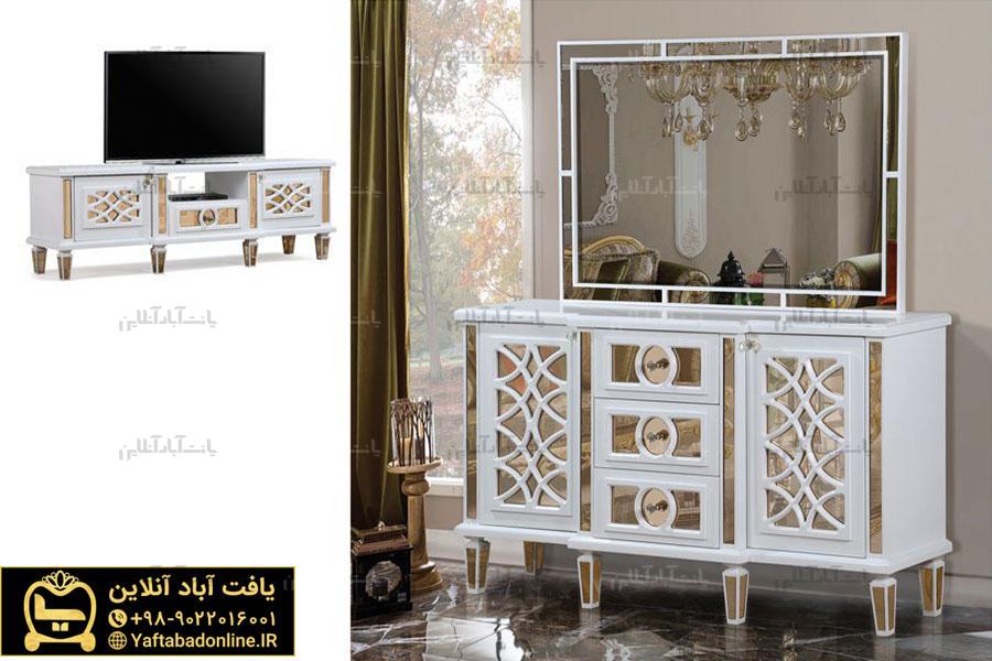 میز کنسول و آینه بارتیس از سری مدل های سایت یافت آباد آنلاین بوده که با طراحی ساده، جذاب و زیبای خود قابلیت استفاده در دکوراسیون های مدرن و مینیمال را دارد. این میز دارای قاب آینه با طراحی جدید و ظریفی می باشد که به زیبایی آن افزوده است. از ویژگی های دیگر مدل بارتیس می توان به ۲ کمد و ۳ کشو آن اشاره کرد بدنه میز کنسول و آینه بارتیس تماماً از ام دی اف درجه مرغوب ساخته شده که تضمین کننده طول عمر بالای محصول را دارد. میز کنسول و آینه بارتیس را در رنگ دلخوا و با ضمانت ۲۴ ماهه یافت آباد آنلاین از ما بخواهید.