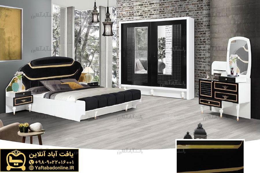 سرویس خواب دو نفره پورشه، مدلی جدید و مدرن است که با طراحی زیبای خود به راحتی در دکوراسیون های مختلف جای خود را پیدا می کند. این مدل از ام دی اف درجه یک و ملامینه ضد خش ساخته شده که از ویژگی های آن می توان به بی صدا بودن تخت خواب و طول عمر بالای آن اشاره کرد. تاج تخت خواب کوئین به صورت لمسه دوزی شده بوده و طراحی خاصی دارد که همین ویژگی سبب محبوبیت دوچندان این مدل شده است. سرویس خواب دو نفره پورشه شامل تخت خواب دو نفره، میزآرایش، پاتختی و صندلی آرایش بوده که اتاق خواب شما را بی نیاز از هر وسیله دکوری دیگری می کند. میز آرایش این سرویس خواب با کشوها و کمدی که بر روی آن تعبیه شده برای نگهداری وسایل مناسب بوده و با آینه یی که بر روی آن است زیبایی محسوسی را برای دکوراسیون محل استفاده به ارمغان می آورد. پاتختی این سرویس خواب از نظر ابعاد و نوع طراحی کاملاً مناسب قرارگرفتن در کنار تخت خواب است. سرویس خواب دو نفره پورشه را در رنگ دلخواه، با ضمانت ۲۴ ماهه یافت آباد آنلاین و خدمات پس از فروش ۵ ساله از ما بخواهید. در صورت وجود هرسوالی در رابطه با این محصول می توانید با کارشناسان سایت یافت آباد آنلاین در طی ۲۴ ساعت شبانه روز تماس حاصل فرمایید.